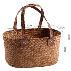 배낭 라탄 바구니 따고 하기 어깨 따는 대나무 피크닉 감성 체험 직조 야채 밀짚 과일, 4 뉴타원형 라지 사이즈 브라운, 1개