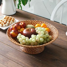 내일의공간 손잡이 원형 라탄 과일 바구니, 네츄럴, 1개