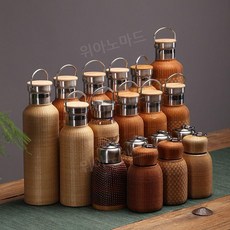 대나무 텀블러 수공예 우드 커피 물컵 휴대용 차량용 찻잔 스텐 진공 단열 보온 보냉 버클 글라스 280ml의 더블 레이어 버전, 스테인레스 스틸 구운 레드 버클 와이어 750, 1개