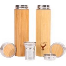 프리미엄 진공 단열 스테인리스 스틸 대나무 텀블러 느슨한 잎차 커피 및 과일 주입 음료를 위한 누수 방지 보온병 24시간 동안 뜨겁게 12시간 차갑게 유지합니다, 17oz