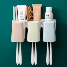 【DF】멀티 사양 벽 마운트 칫솔 홀더 세트 펀칭 치약 브러쉬 컵 가글 컵 칫솔 컵 스토리지 랙, 【DF】, 【DF】3포트칫솔홀더압착기, 1개
