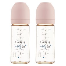 해님 유아용 낫싱 올인원 PPSU 아빠가 사랑해 젖병 트윈팩, 크림 핑크, 250ml, 2개