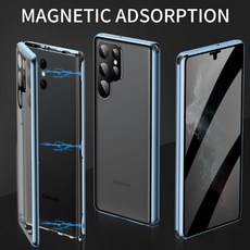 갤럭시 S24울트라 적용 사생활보호 강화유리 풀커버 케이스 엿보기 방지 마그네틱 양면 투명 케이스