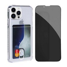 [1+1] 카드 범퍼 케이스 & 사생활 보호 프라이버시 풀커버 강화 유리 세트 상품 // 액정 보호 방탄 필름 투명 생폰 쌩폰 느낌 스키니 젤리 휴대폰 핸드폰 수납 케이스, 1+1 세트, 1개