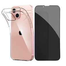 [1+1] 젤리 케이스 & 사생활 보호 프라이버시 풀커버 강화 유리 세트 상품 // 액정 보호 방탄 필름 투명 생폰 쌩폰 느낌 스키니 범퍼 휴대폰 핸드폰 케이스, 1+1 세트, 1개