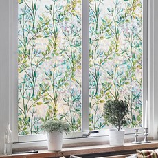 SAIVEINA 자외선 차단 사생활 보호 유리 창문용 무점착 창문시트지 흔적없이 간편제거 반복 사용가능 물로 붙이는 글라스시트지 스테인드글라스 시트지 90CMX400CM, 나뭇잎
