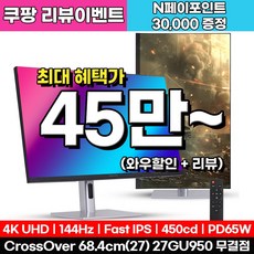 크로스오버 Fast-iPS UHD4K PD65 USB-C 게이밍 멀티스탠드 27인치 모니터, 27GU950(무결점), 68.47cm