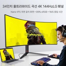 38인치 커브드 울트라와이드 게이밍 모니터 4K144Hz UWQHD(3840 x 1600p) R2500 Frameless DCI-P3 99 sRGB 1ms Response T, 34 inch, Curved-4K-165hz_black