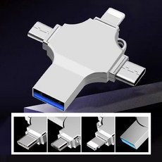 Kudos 핸드폰 외장메모리 OTG 아이폰 USB 메모리 십자형 4in1, 1개, 64GB