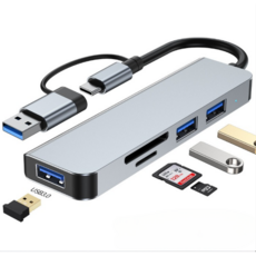 더블원 5 in 1 usb 멀티허브 c타입 카드리더 TYPE-C & USB3.0, 실버