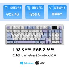 저소음 멤브레인 키보드 무선 키보드 게이밍 98키 RGB 3모드 2.4G 무선식 키보드, 제조사축, L98, 블루
