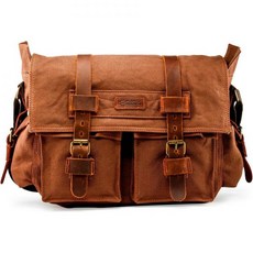 노트북용 메신저백 빈티지 캔버스 가죽 크로스바디 사첼 숄더 컴퓨터 가방 여행용 사무실, Coffee, 17 inchGEARONIC GEARONIC