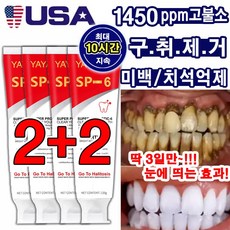 [미국기술] 1+1/2+2 고불소치약 치아 미백 구취 입냄새 제거 10시간 지속 치석 제거 충치 예방 잇몸 강화 치약, 4개, 120g