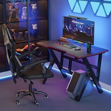 카본 패턴 1인용 게이밍 컴퓨터 철제책상 사무용책상 헤드셋거치대 포함, 블랙