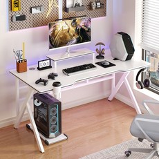 트리플썬 카본 패턴 k자형 고급 컴퓨터 게이밍 책상 멀티 데스크 테이블, 화이트