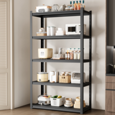 주방수납장 주방 수납장 조립식 진열장, 4단, 블랙