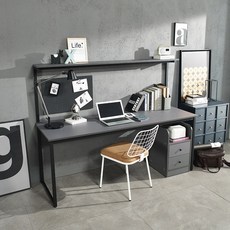 라베른 철제 컴퓨터 선반형 책상, 그레이+블랙철제