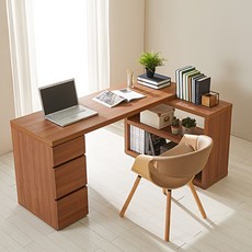 로그하우스 오름 시리즈 1600 고무나무 원목 책상 컴퓨터책상 수납 데스크, 1600 오름책상, 월넛브라운