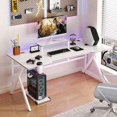 크크라이프 튼튼한 K자형 게이밍 컴퓨터 책상, 화이트