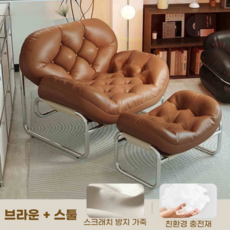 플린츠 모던 1인 쇼파 가죽 소파 스툴 안락의자 인테리어 발판 릴렉스 의자, 브라운/스툴