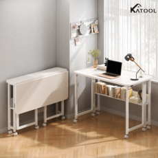 KATOOL 간편한 슬림 바퀴형 이동식 접이식 폴딩 책상 업그레이드 컴퓨터 공부 책상, 선반 모델