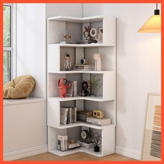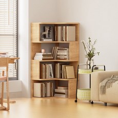코너책장 벽선반 인테리어 수납장 장식장 진열장 책장 낮은책장 오픈책장 책꽂이 수납책장, 원목 4단 (55x55x128cm)