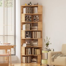 코너책장 벽선반 인테리어 수납장 장식장 진열장 책장 낮은책장 오픈책장 책꽂이 수납책장, 원목 7단 (55x55x224cm)