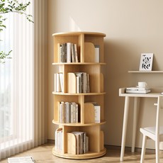 KURUA 학생 대용량 원형 책장 거실 서재 회전형 책꽂이, 4, 오크, 1단