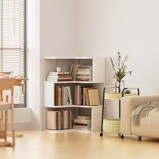 코너책장 벽선반 인테리어 수납장 장식장 진열장 책장 낮은책장 오픈책장 책꽂이 수납책장, 웜화이트 3단 (55x55x96cm)