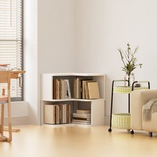 코너책장 벽선반 인테리어 수납장 장식장 진열장 책장 낮은책장 오픈책장 책꽂이 수납책장, 웜화이트 2단 (55x55x64cm)