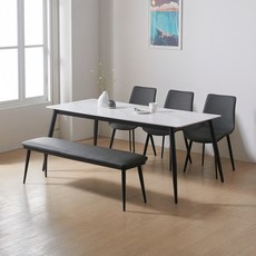 라로퍼니처 클래시 1800 포세린 통 세라믹 6인 식탁 세트, 화이트, 그레이 3개+벤치 1개