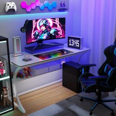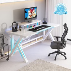Unihome K자형 고급 컴퓨터 게이밍 책상 멀티 데스크 테이블, 프리미엄 화이트 업그레이드형