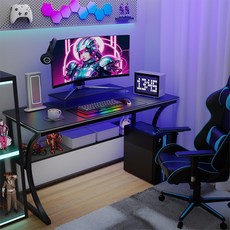 트리플썬 카본 패턴 k자형 고급 컴퓨터 게이밍 책상 멀티 데스크 테이블, 블랙
