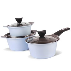 키친웰 벨로스 세라믹 코팅 냄비 3종 세트, 스카이블루, 양수냄비 16cm + 20cm + 편수냄비 18cm, 1세트