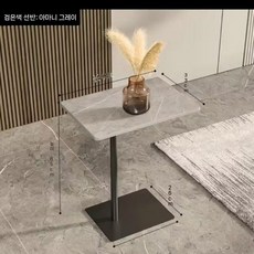 마블링 대리석 거실 사이드 테이블 탁자 티테이블 대리석테이블 높은쇼파테이블 세라믹소파테이블, 블랙+마니그레이(48x33x65cm)