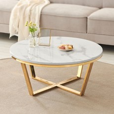 파로마 소이 원형 대리석 거실 소파 테이블 YWG009, 골드프레임