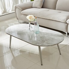 트리팜 프라하 리빙 테이블 타원형, 화이트마블(상판) + 크롬(다리)