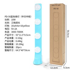 램프 화이트 모드 원목 거울 선물 스마트 호텔 라이트 화장대 미러 라이트 휴대용 USB, 스카이블루 일렬 일체형 4램프 (3색 무극조광)