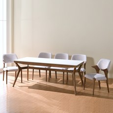 루나 포세린 세라믹 원목 6인 식탁세트 1800 의자형 IKLN2B, 화이트, 식탁+B형의자 6개