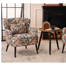 1인소파 안락 침실 엔틱 암체어 호텔 펜션 빈티지 고급 교장실, 08.베이지 레드 꽃무늬+린넨 쿠션