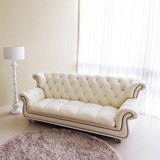 버즈가구 비아노 3인용 고급 PU 가죽 소파, 아이보리[BP1029]
