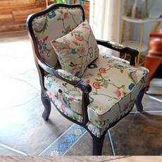 미국 거실 패브릭 가죽 앤틱 소파 유럽 침실 의자 프랑스 클래식 쇼파 1인용, D.화려한 등나무 꽃 린넨