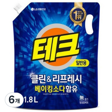 테크 클린 앤 리프레쉬 액체세제 일반 리필, 1.8L, 6개