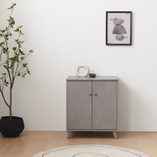 미니 여닫이 2단 600 와이드 선반장 침실 침대 옆 낮은 수납장, 그레이