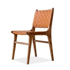 북유럽 등받이 직조 하이 엔드 의자, 월넛+안장 가죽