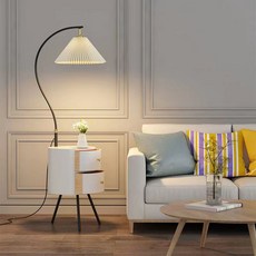활장스탠드 고급 플로어 램프 거실 소파 인테리어 침대옆 수면 독서 무드등 티테이블 간접조명, 블랙폴백색12W3색디밍