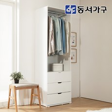 동서가구 이즈 클래스 롱바 원룸 800 3단 서랍장 옷장 DF923142, 화이트