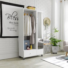 동서가구 시오렌 드레스룸 시스템장 행거 옷장 (300/600/800/이동형/고정형), 6. 800 거울행거 918160 화이트_바퀴형