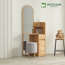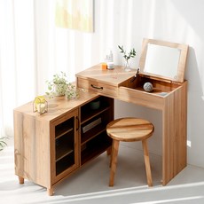 엄마가구 고무나무 원목 확장형 수납 화장대 방문설치, 내추럴