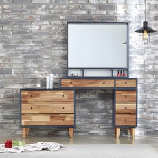 리빙프레젠트 국산 수납 아카시아 원목 화장대 1700 775, 네이비